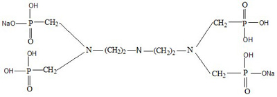 DTPMP•Na2 is a scale inhibitor, for barium sulphate in particular and a chelating agent. DTPMP•Na2 can be used as stabilizer for peroxide bleaching, detergent auxiliaries, in industrial & municipal cleaning water, terrestrial heat water, oilfield water, etc.